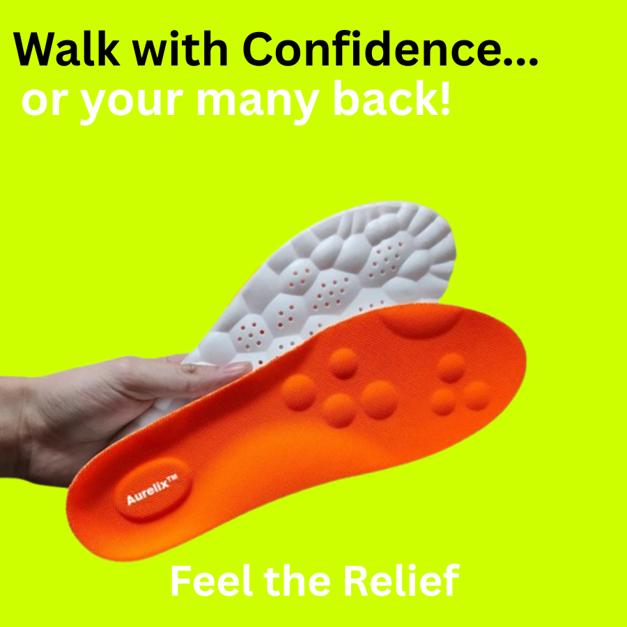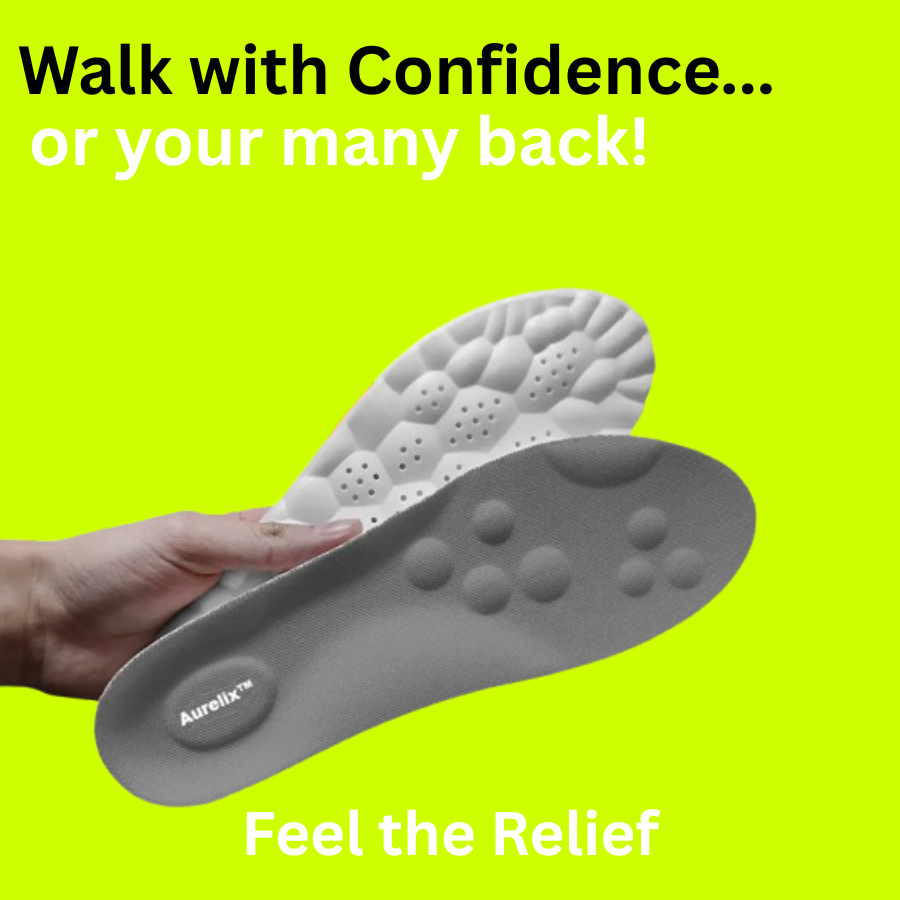 Say goodbye to foot, knee, and back pain in seconds. Aurelix™ 4D Massage Insoles deliver instant comfort and support that lasts all day — whether you’re on your feet for hours or just need extra relief with every step.