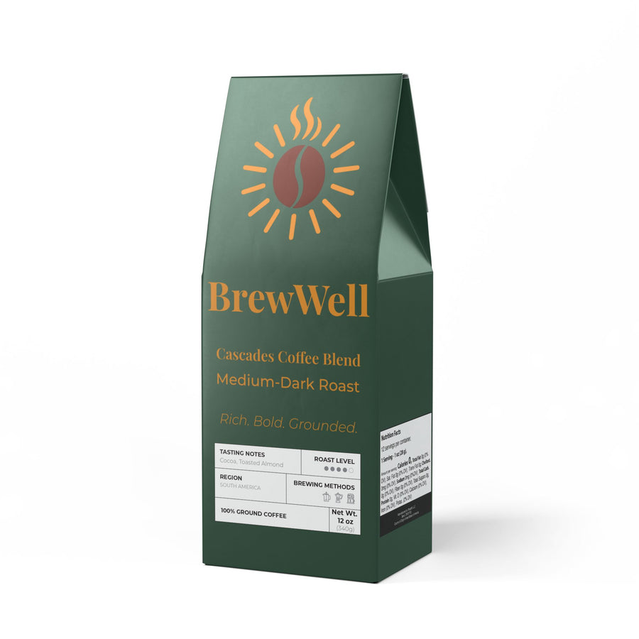 The Cascades Coffee Blend delivers a rich and robust delight for your mornings. Packed in a 12oz bag, this medium-dark roast boasts flavors of cocoa and toasted nut, offering a full-bodied experience with each sip. Sourced from South America, this blend is the perfect choice for brewing it in your drip coffee maker, moka pot, or percolator. And with both whole bean and ground options available, you're in control of your coffee experience. Roasted with care in the USA.