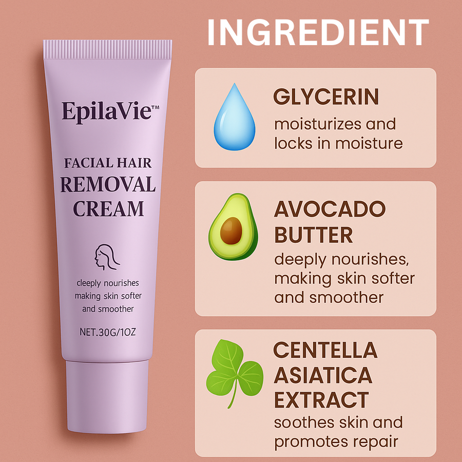 Tired of tweezing, waxing, or shaving? EpilaVie™ removes facial hair painlessly while keeping pores clear and skin nourished. No redness, no bumps – just effortlessly smooth skin that lasts!