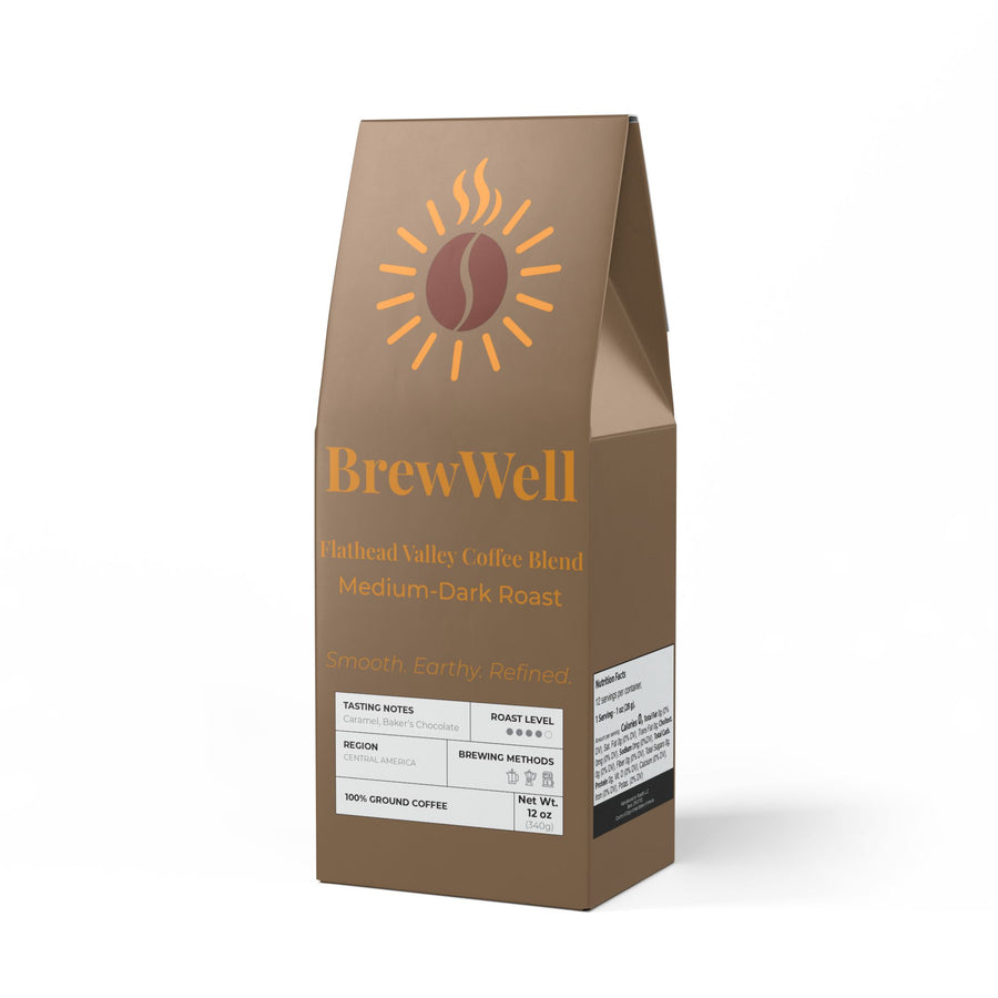 Meet the Flathead Valley Coffee Blend, a bold and rich brew to kickstart your day! This 12oz pack features a medium-dark roast, delivering a deep body with notes of baker's chocolate and caramelized sugar. Meanwhile, the body tastes rich with warm spice, caramel, and dark chocolate-tasting notes that'll leave you craving more. Sourced from Central America, it's perfect for brewing in your drip coffee maker, French press, Moka Pot, or percolator, or enjoying as a refreshing cold brew. Whether you prefer whole bean or ground, we've got you covered. Roasted with care right here in the USA.