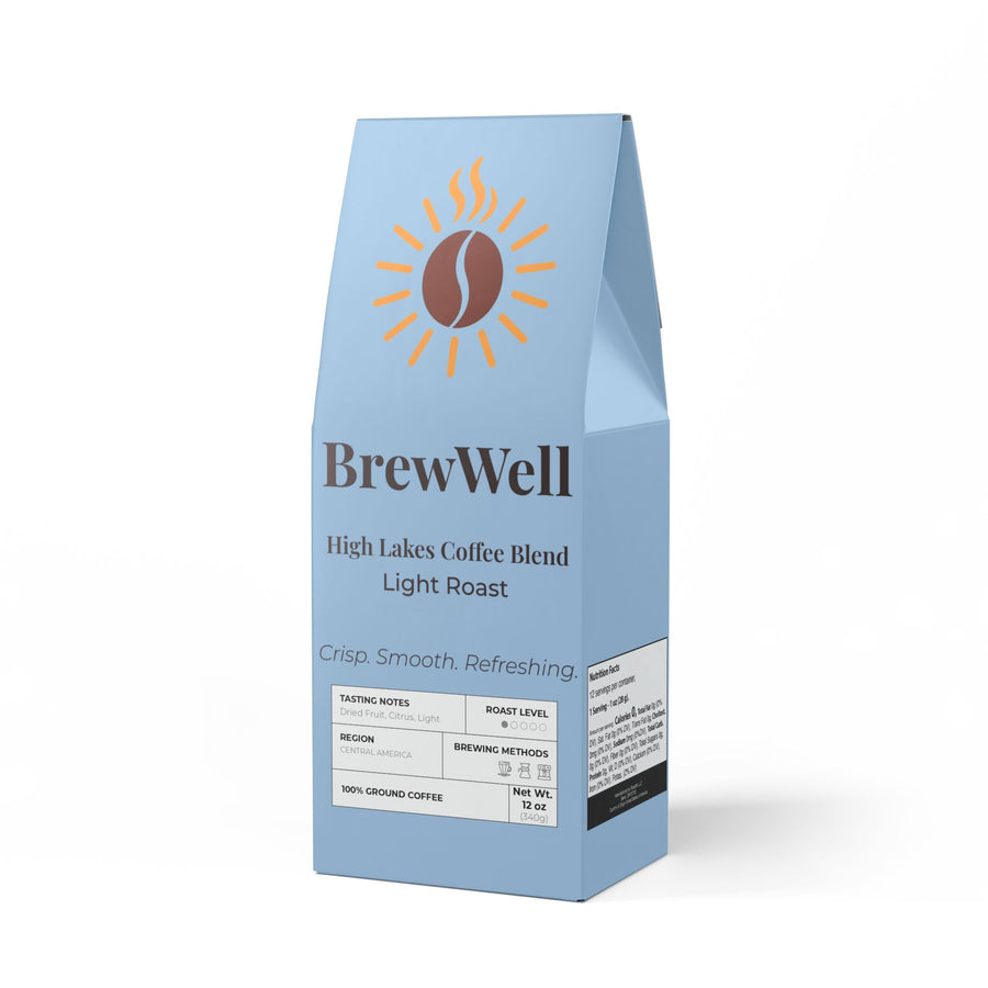 The High Lakes blend is a light roast from South and Central America that is perfect as a daily staple thanks to its light body. Each cup comes with dried fruit and citrus flavors with hints of milk chocolate and almonds. Perfect for pour-over, Aeropress, Espresso, or a delightful cold brew. Available in 12oz packs of whole bean and ground options. Roasted in the US from globally sourced ingredients.