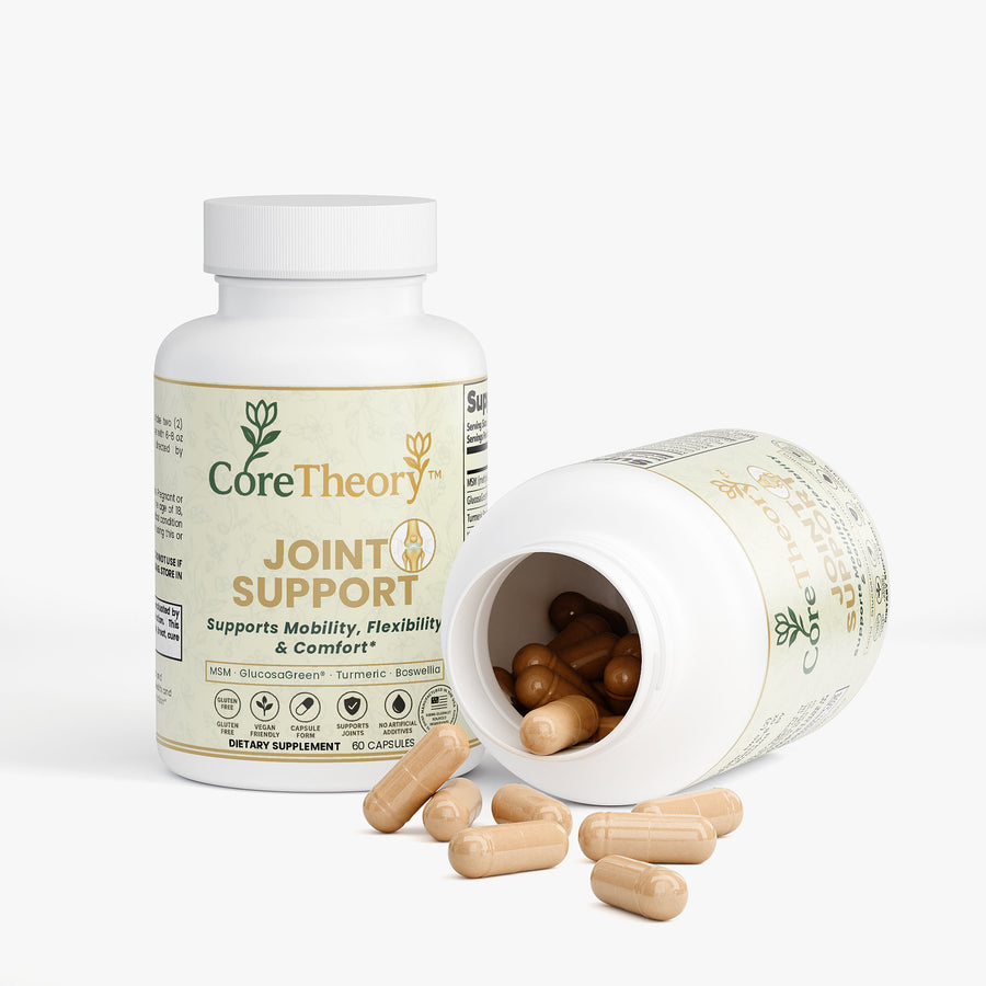 This joint support supplement provides essential nutrients and compounds that support joint health. It features a comprehensive blend of ingredients such as MSM, GlucosaGreen® vegetal glucosamine HCl, Turmeric Powder, and Boswellia serrata Extract, designed to promote joint flexibility, reduce discomfort, and support overall joint function. Ideal for daily consumption, this supplement aims to enhance your joint health through its potent, natural ingredients, without relying on artificial additives.*