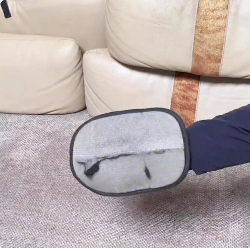The glove uses static electricity and a special bristle structure to attract and trap pet hair. As you gently glide the glove over surfaces or your pet, the static charge lifts loose fur and debris, collecting it into easy-to-dispose clumps. No sticky tape or batteries required!